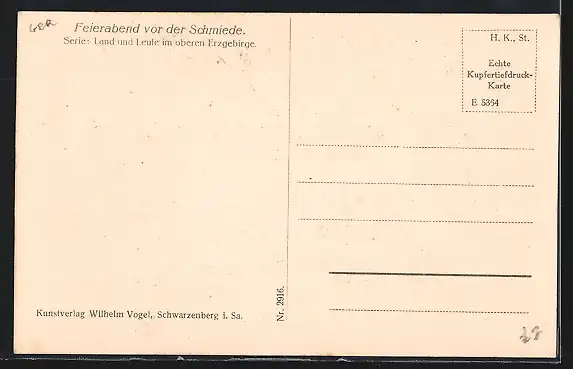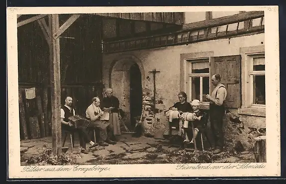 AK Familie aus dem Erzgebirge beim Feierabend vor der Schmiede