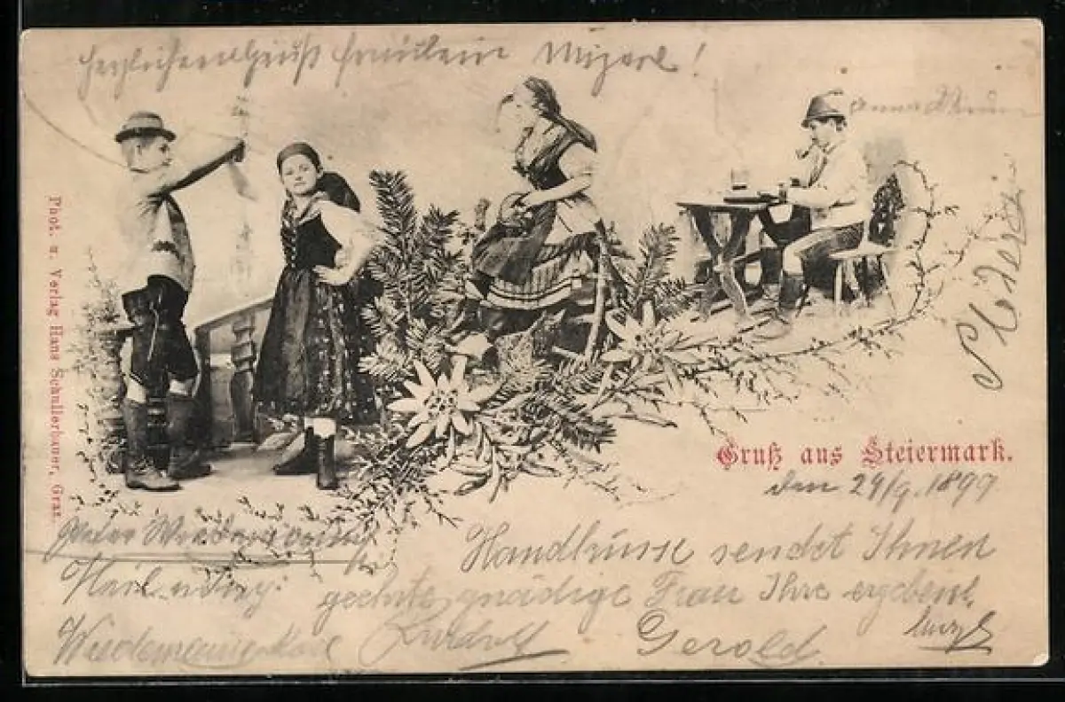 AK Familie aus der Steiermark in Trachten