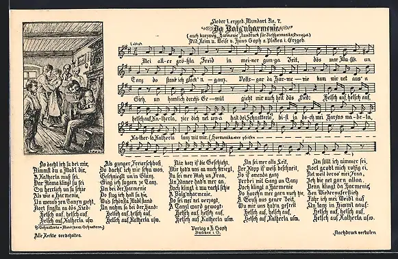 AK Familie beim Musizieren, Lied in erzgeb. Mundart Da Balg`nharmonie