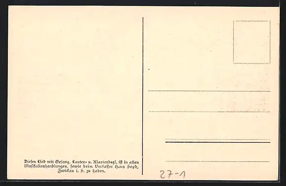 Ein Angebot in Ansichtskarten Musik: Liedkarten - 752 weitere Angebote in dieser Kategorie