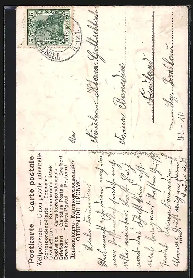 alte Ansichtskarte, gelaufen 1907, Eckknicke re., guter Zustand