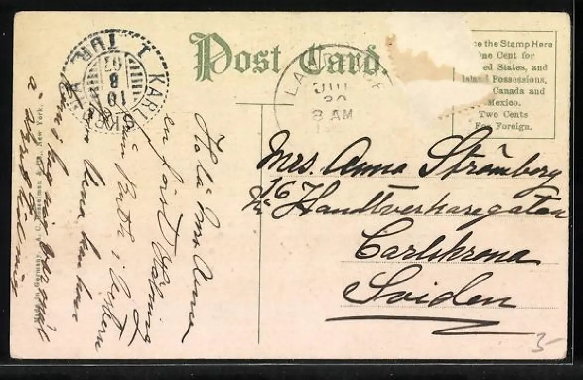 alte Ansichtskarte, gelaufen 1907, Briefmarke entfernt, rückseitig Oberflächenschaden, Eckknicke oben