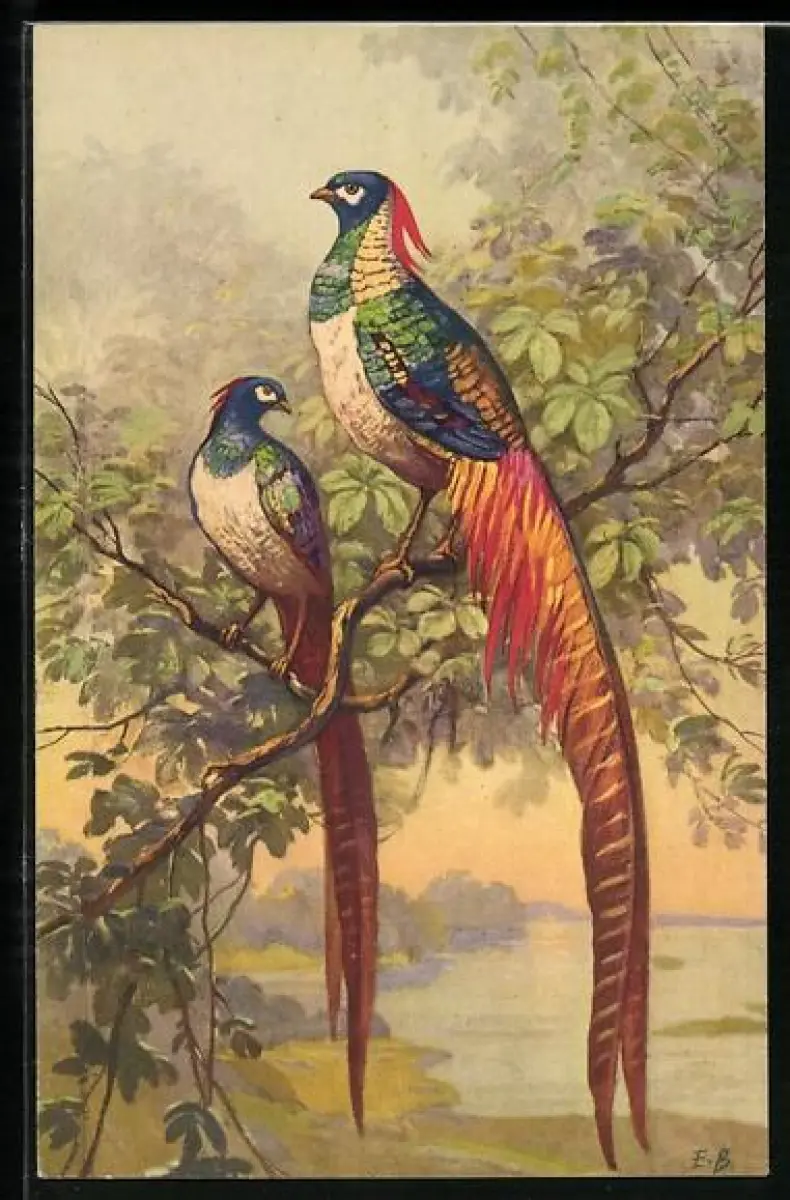 AK Farbenprächtige Vögel sitzen auf einem Ast