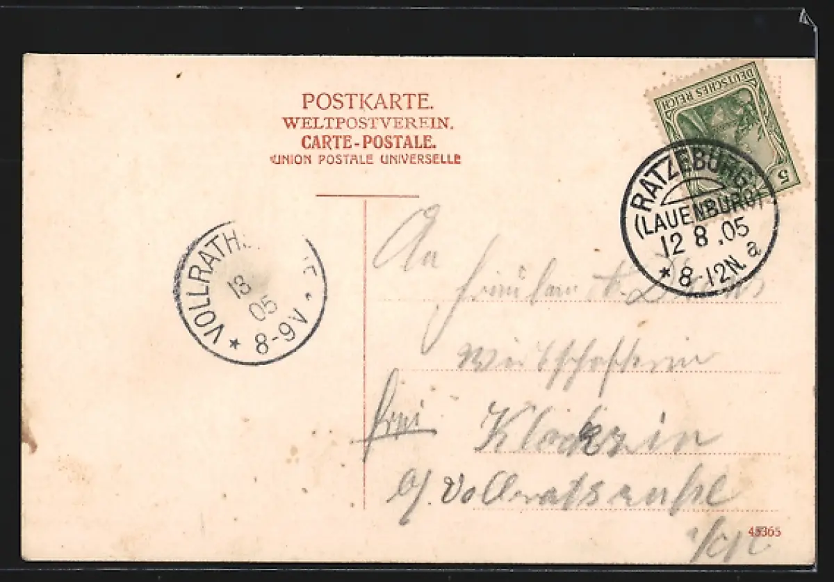 alte Ansichtskarte, gelaufen 1905, guter Zustand