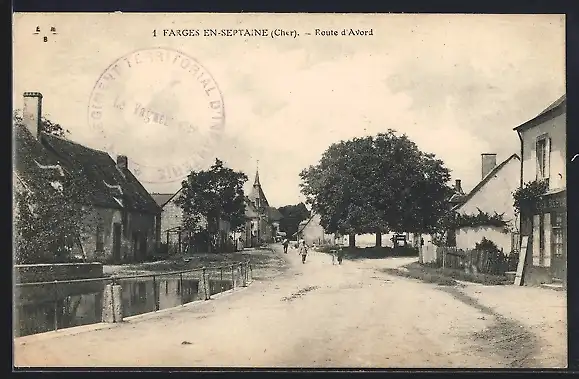 AK Farges-en-Septaine, Route d`Avord avec maisons et arbres en perspective