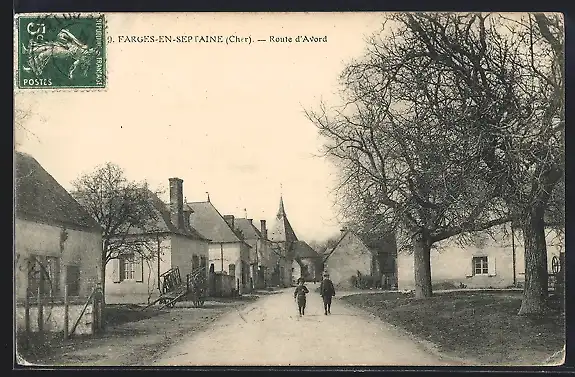 AK Farges-en-Septaine, Route d`Avord avec vue sur les maisons et arbres en hiver