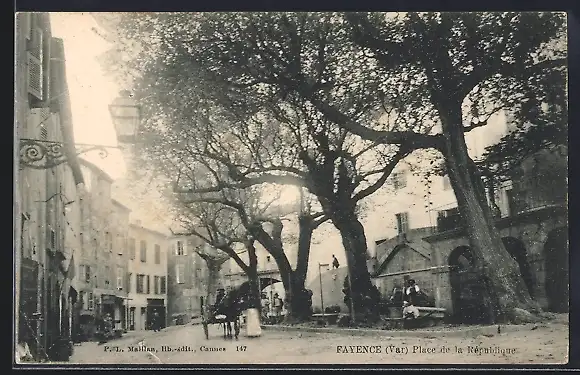 AK Fayence, Place de la République avec grands arbres et passants