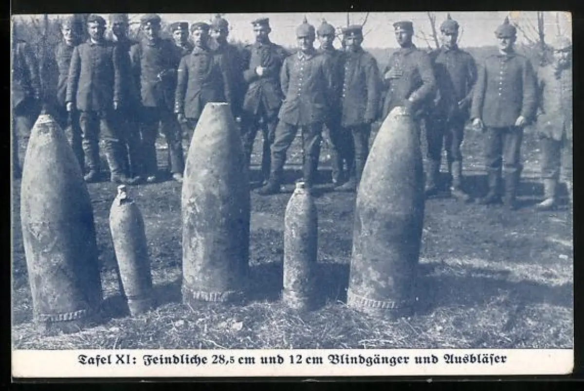 AK Feindliche 28, 5 cm & 12 cm Blindgänger & Ausbläser