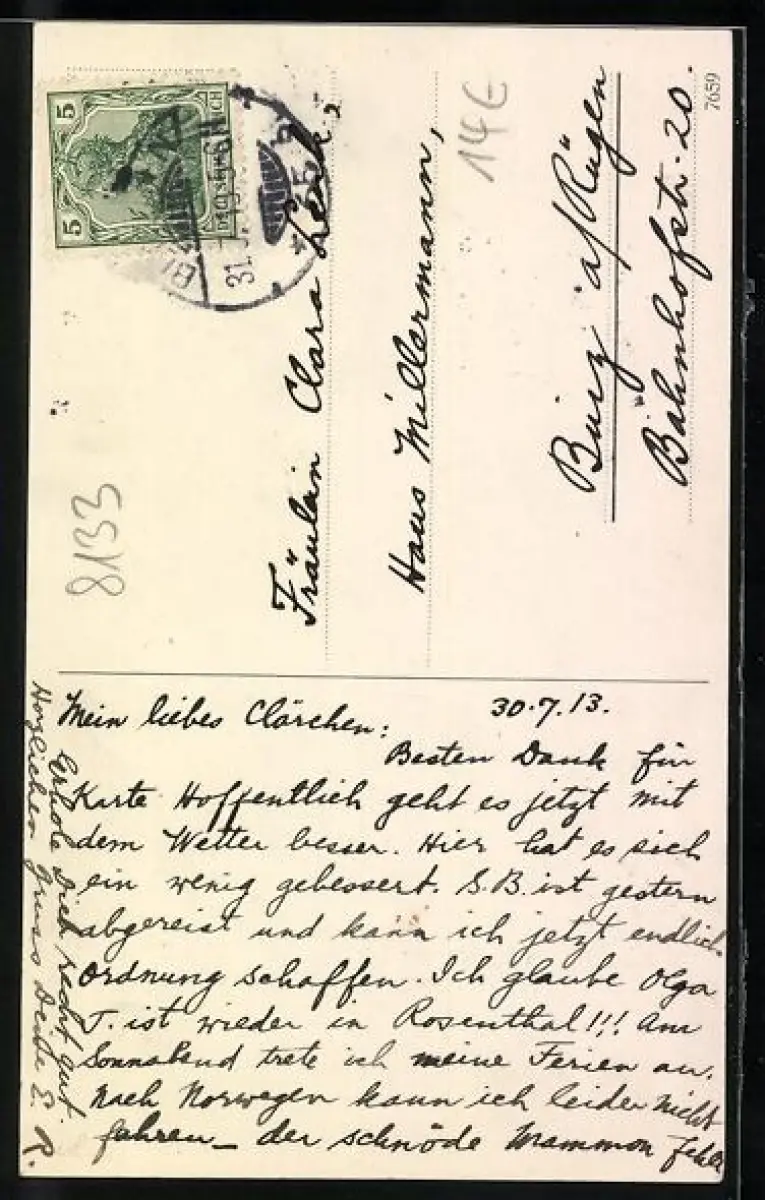 alte Ansichtskarte, gelaufen 1913, guter Zustand