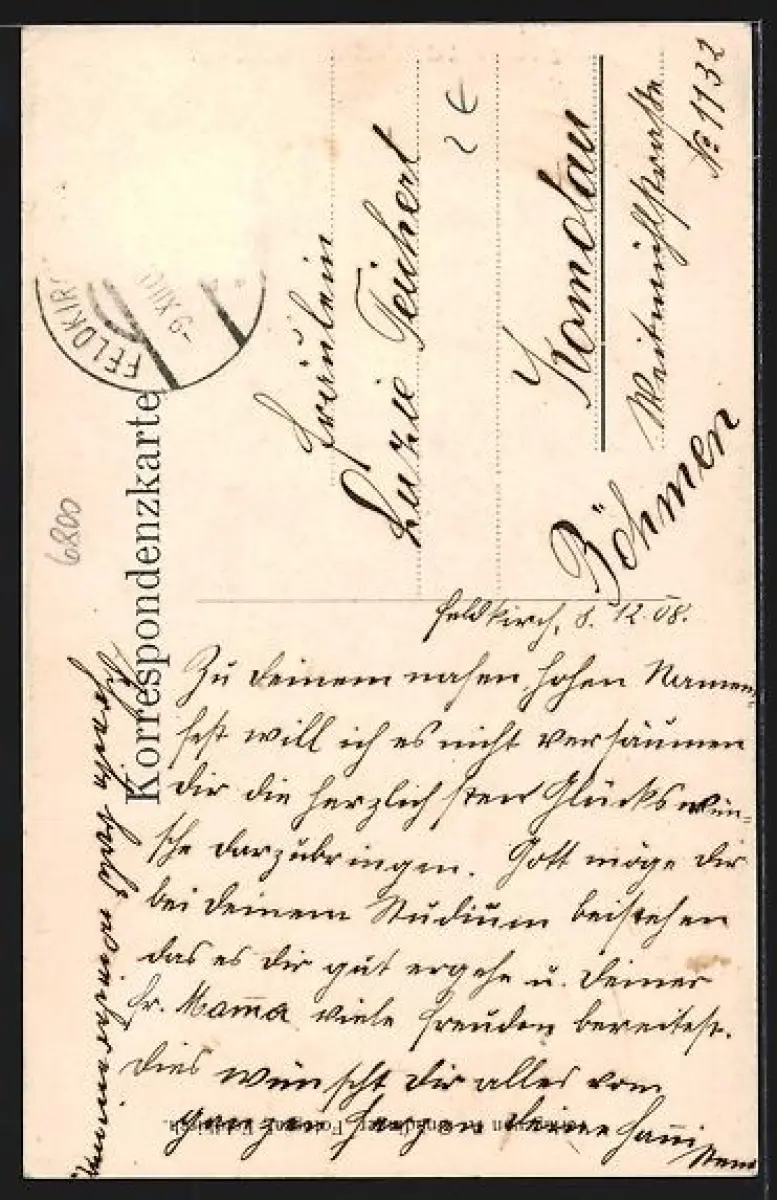 alte Ansichtskarte, gelaufen, Briefmarke entfernt, rückseitig Oberflächenschaden, guter Zustand