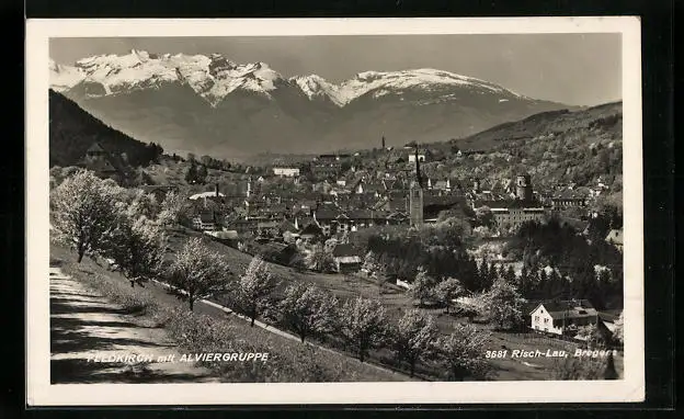 AK Feldkirch, Ortsansicht mit Alviergruppe