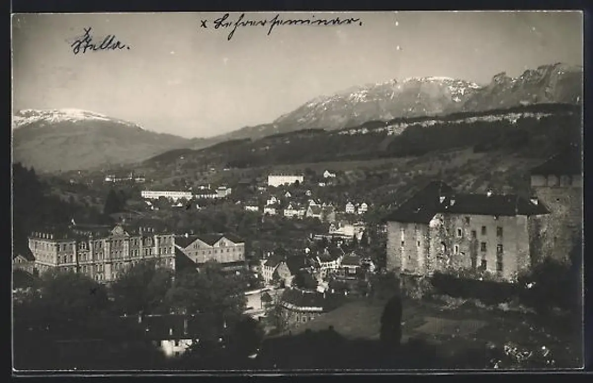 AK Feldkirch, Ortsansicht mit Bergpanorama