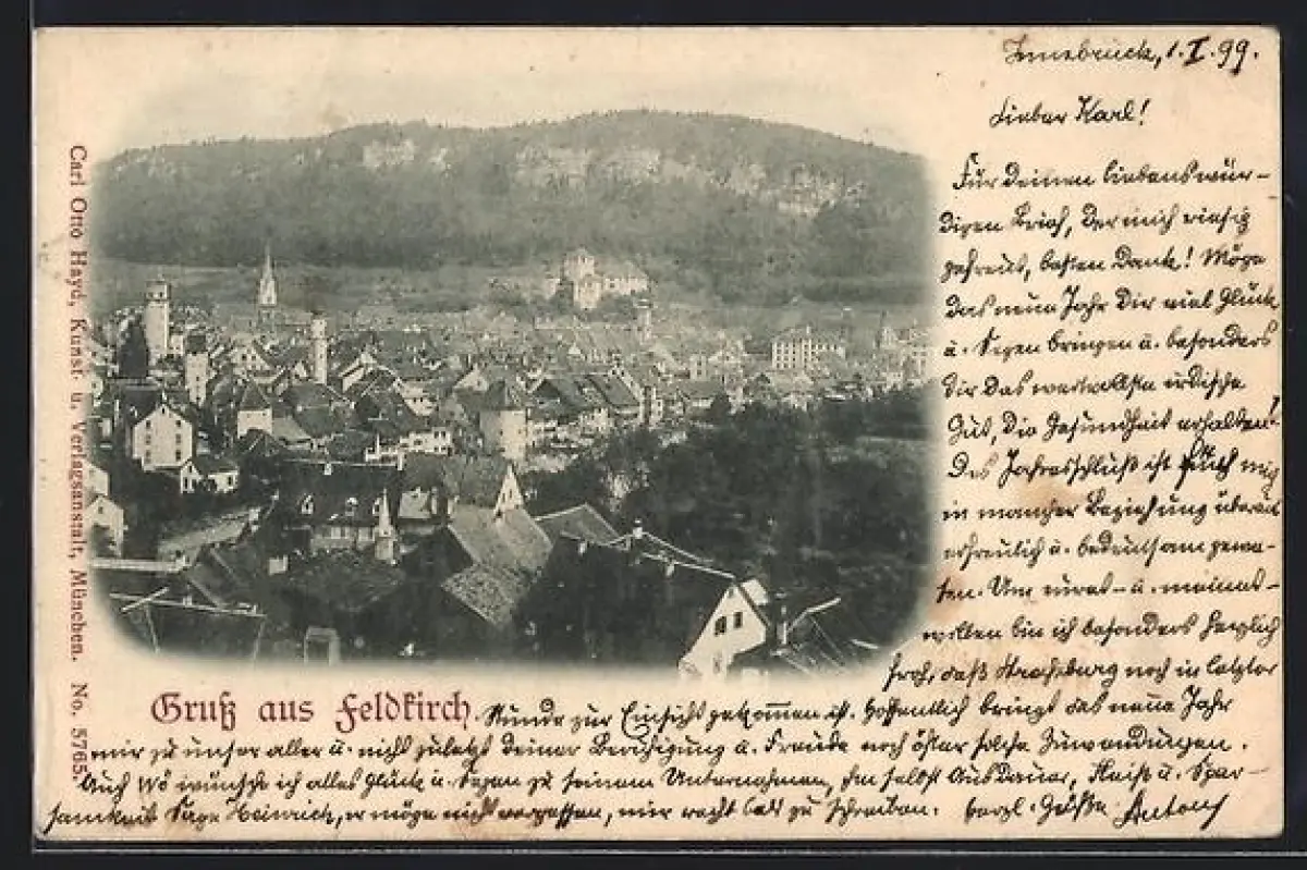 AK Feldkirch, Panorama mit Stadt und Kirche