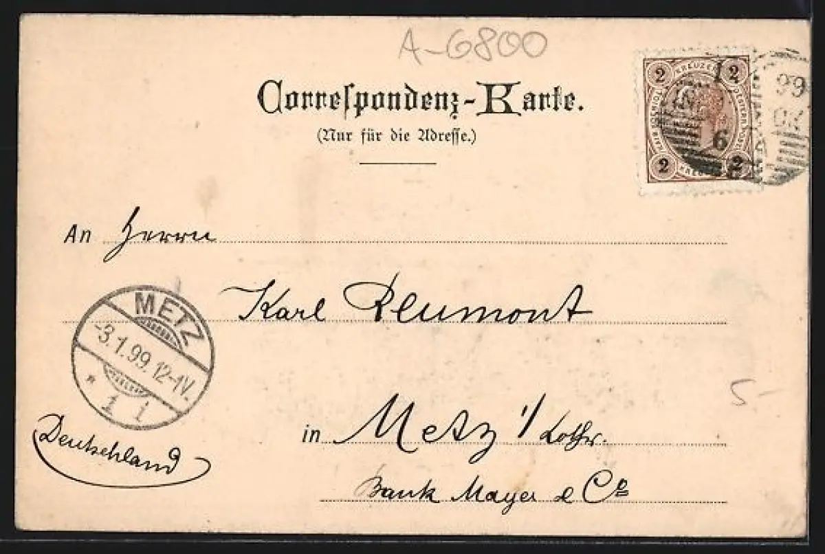 alte Ansichtskarte, gelaufen 1899, guter Zustand