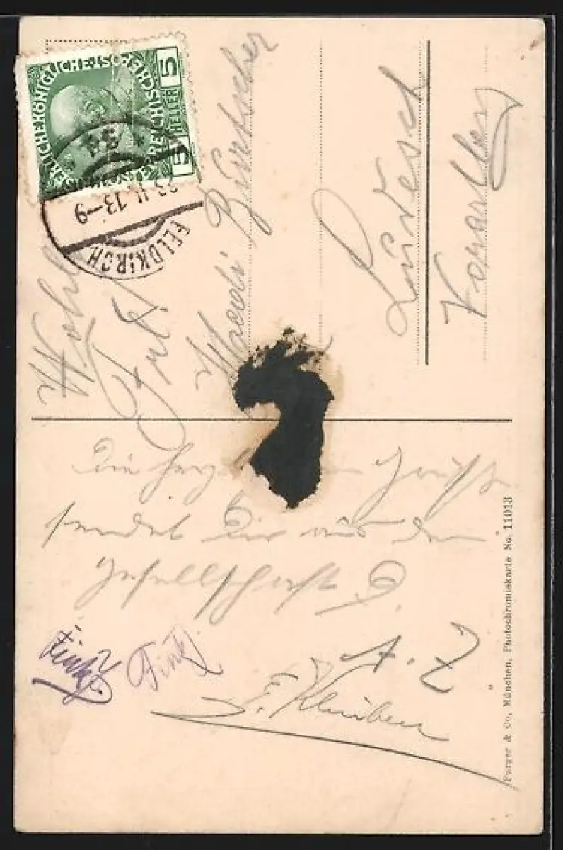 gelaufen 1913, rückseitig Klebe- und Papierreste, guter Zustand