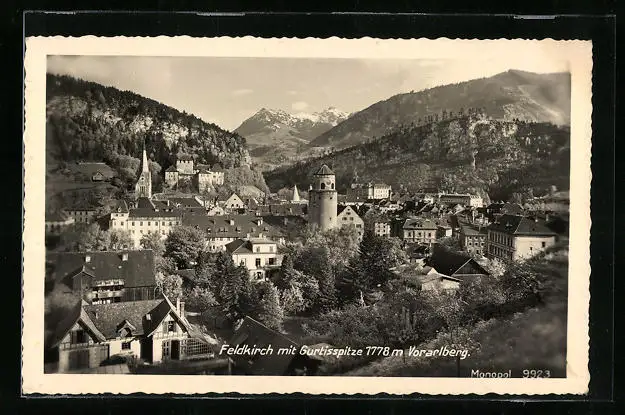 AK Feldkirch, Stadtansicht mit Gurtisspitze