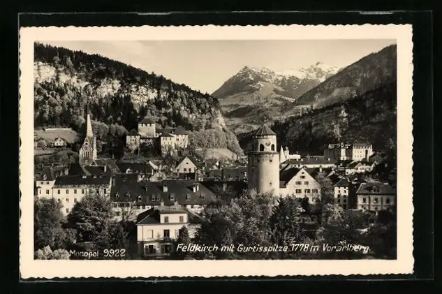 AK Feldkirch, Stadtansicht mit Gurtisspitze