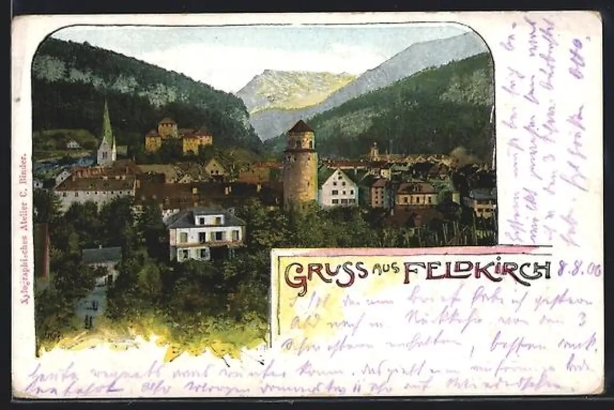 AK Feldkirch, Teilansicht mit Kirche