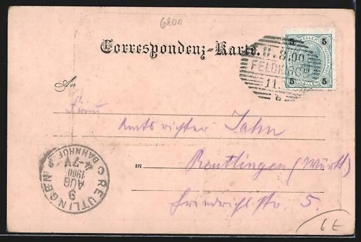 alte Ansichtskarte, gelaufen 1900, guter Zustand
