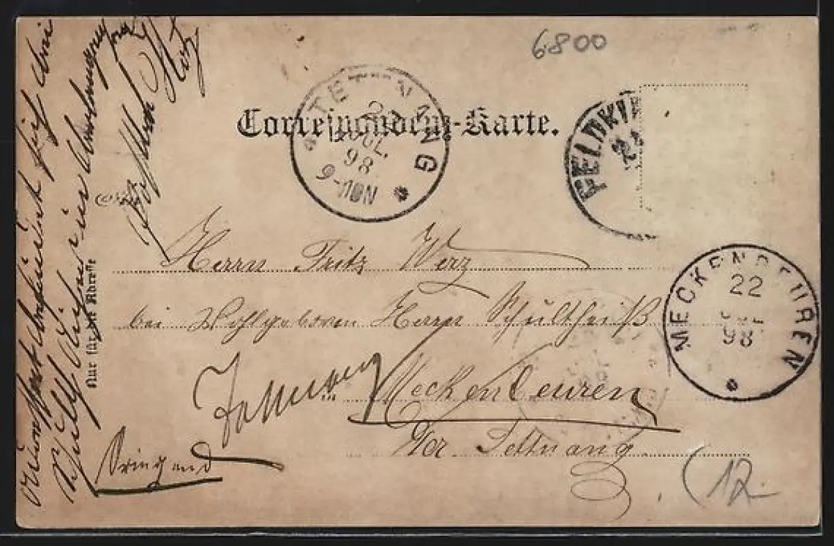 alte Ansichtskarte, gelaufen 1898, Briefmarke entfernt, guter Zustand