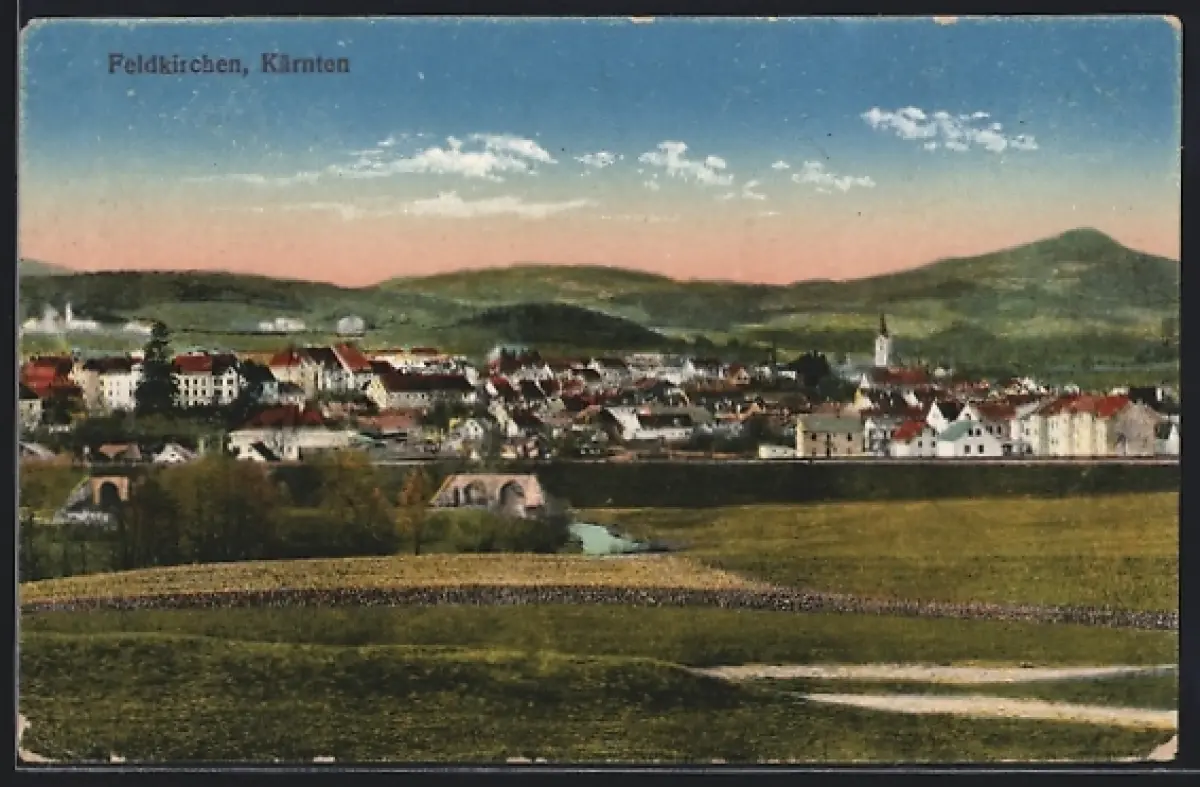 AK Feldkirchen /Kärnten, Ortsansicht über die Weide