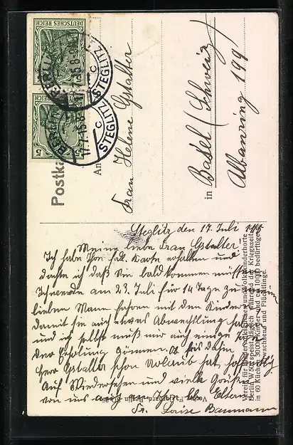 gelaufen 1915, Stempelspur, guter Zustand