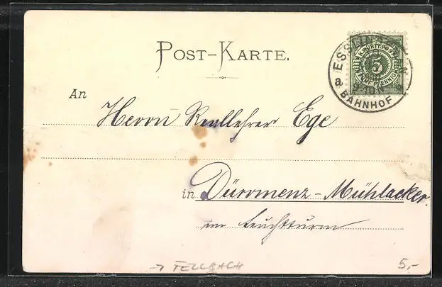 alte Ansichtskarte, gelaufen 1900, Einriss li. unten, guter Zustand