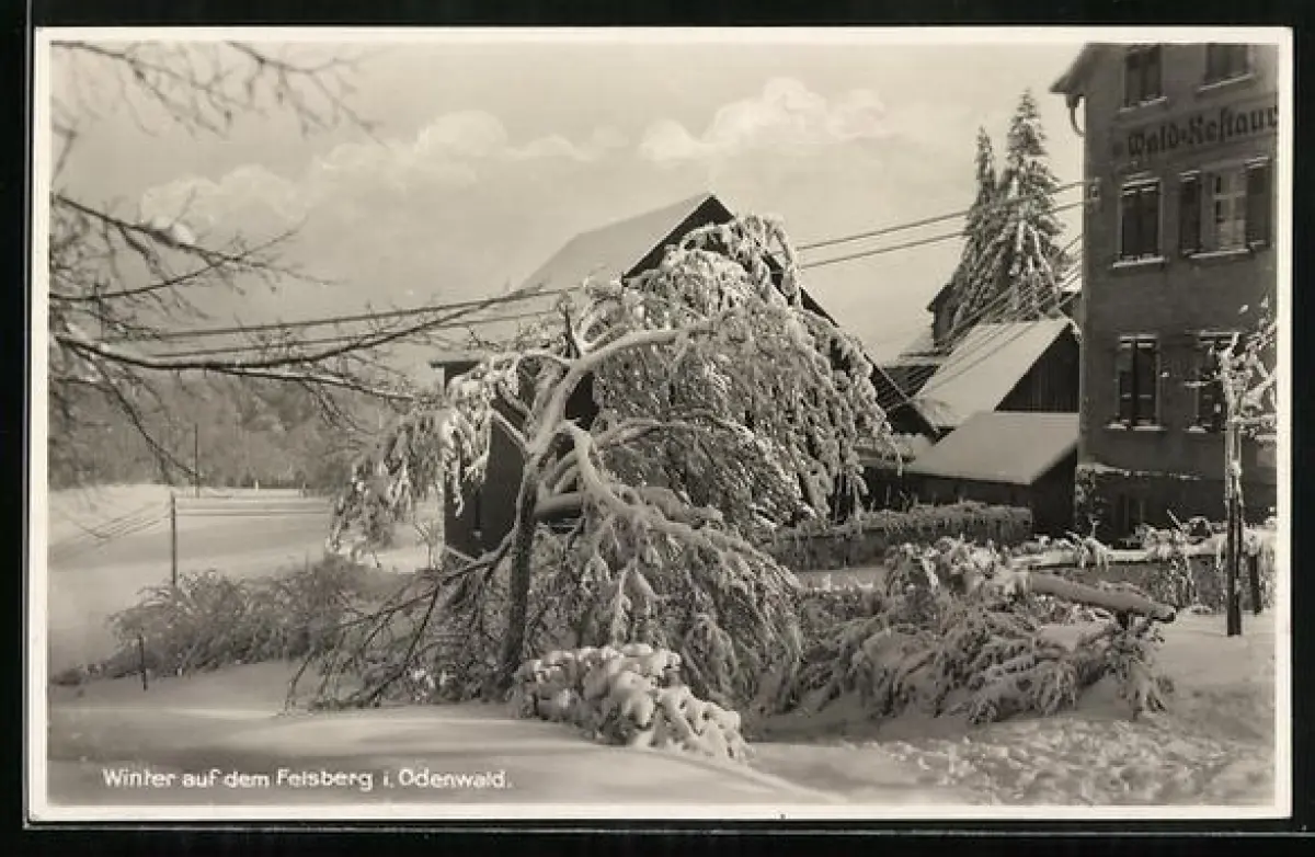 AK Felsberg i. Odenwald, Wald-Restaurant und Pension Felsberg, Winteransicht