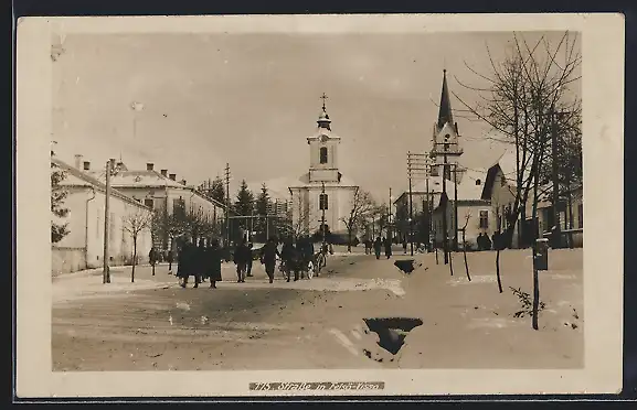 AK Felsövisö, Strassenpartie an der Kirche im Schnee
