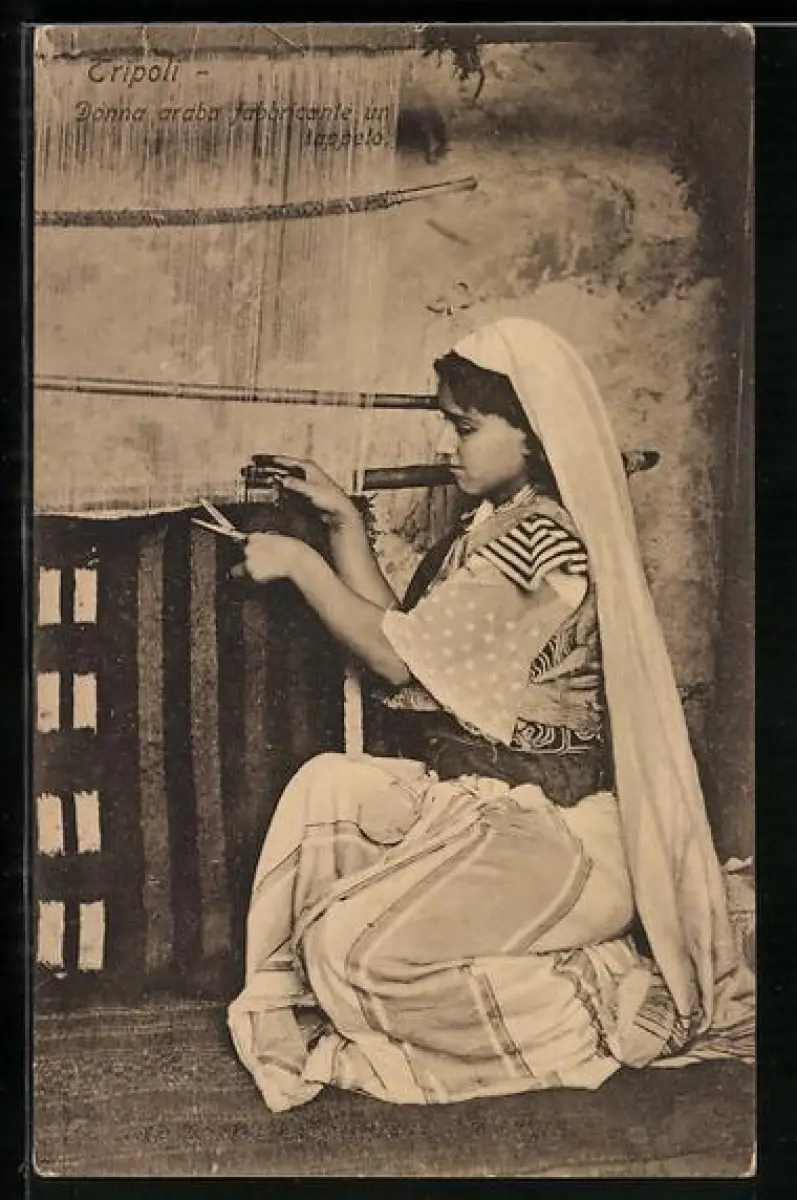 AK Femme arabe fabriquant un tapis, arabische Teppichweberin bei der Arbeit