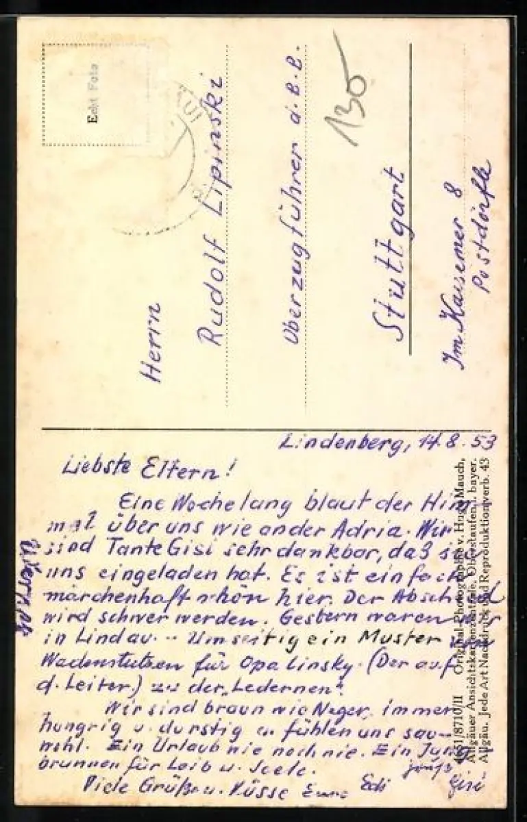 alte Ansichtskarte, gelaufen 1953, Briefmarke entfernt, guter Zustand
