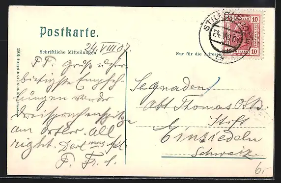 alte Ansichtskarte, gelaufen 1907, Stempelspur, guter Zustand