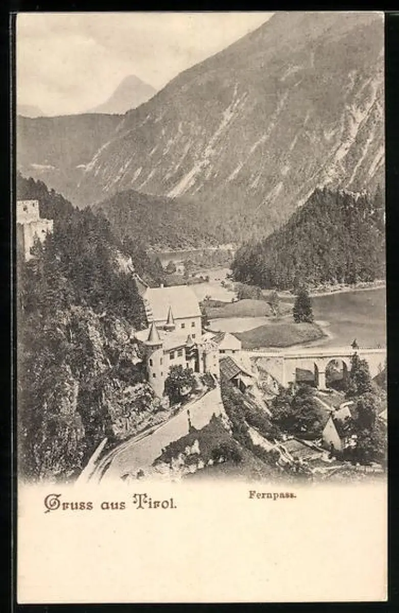 AK Fernpass /Tirol, Ortsansicht mit Viadukt aus der Vogelschau