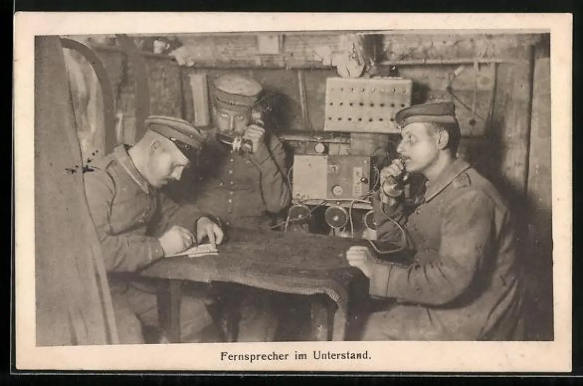 AK Fernsprecher im Unterstand bei der Arbeit