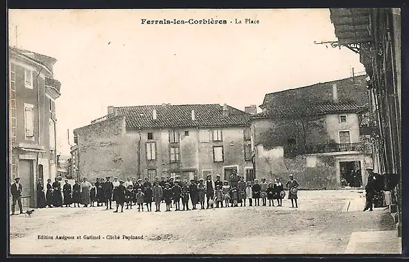 AK Ferrals-les-Corbières, La Place avec des habitants rassemblés