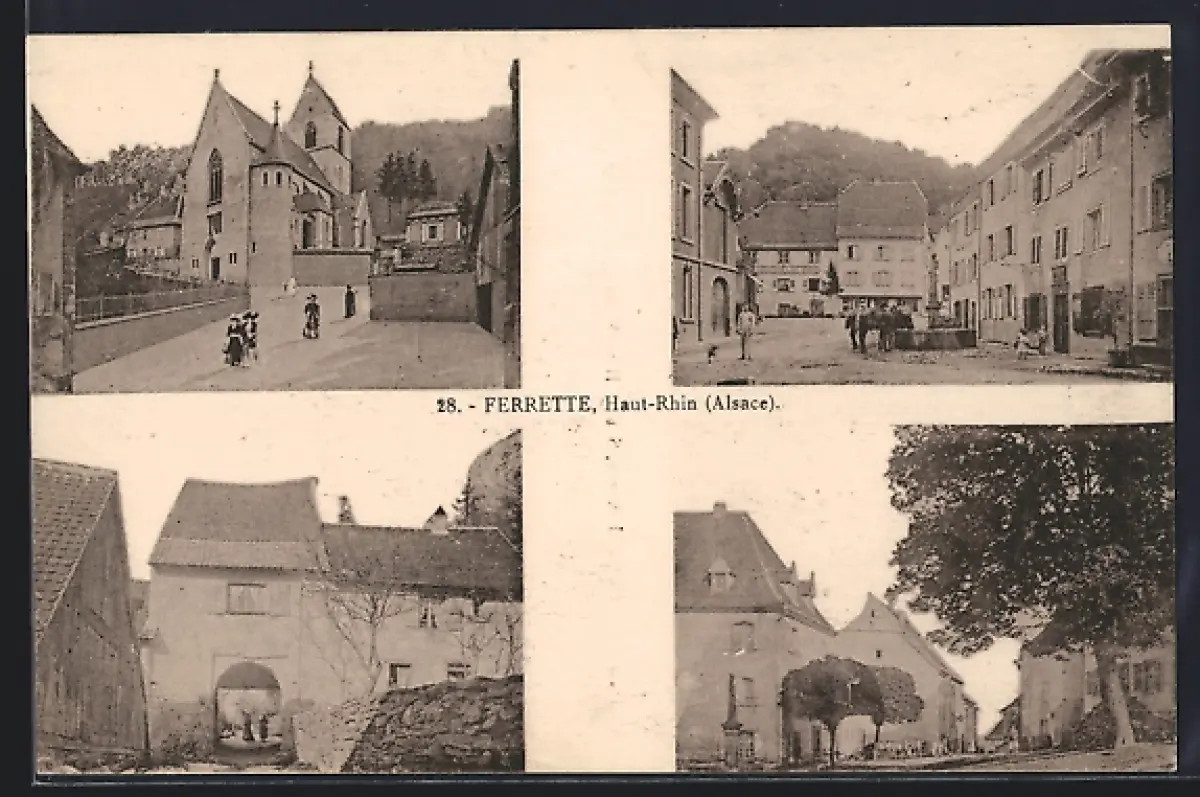AK Ferrette /Haut-Rhin, Kirche, Tor, Strassenpartie