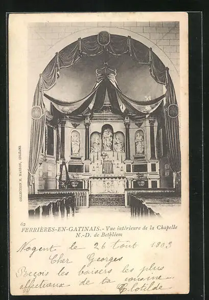 AK Ferrieres-en-Gatinais, Vue interieure de la Chapelle