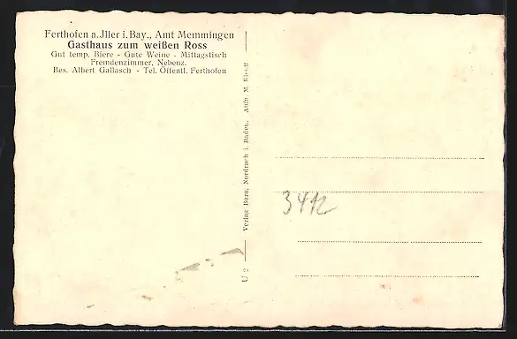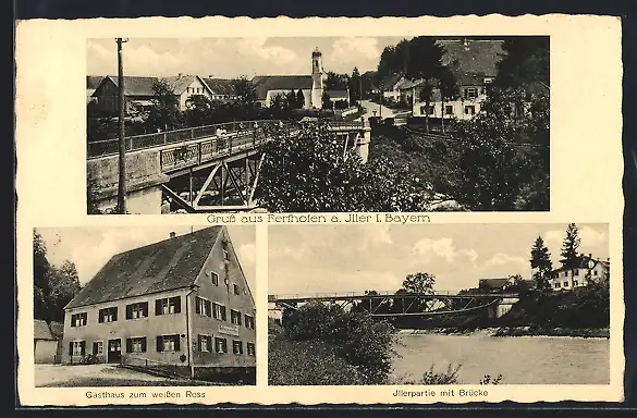 AK Ferthofen a. Iller /Bay., Gasthaus zum weissen Ross A. Gallasch, Illerpartie mit Brücke, Panorama mit Brücke