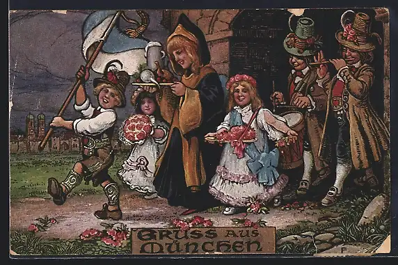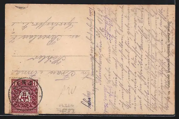 alte Ansichtskarte, gelaufen, Abriebspur re. unten, Bugspur li. oben