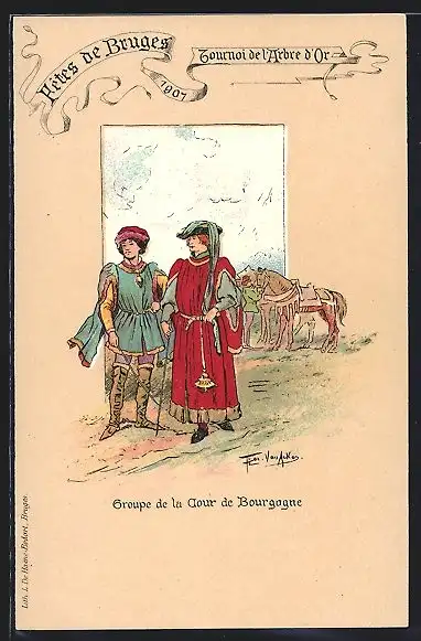 AK Fêtes de Bruges, Tournoi de l`Arbre d`Or 1907, Groupe de la Cour de Borgogne, Edelherren