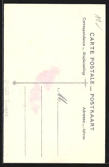 Personenbezogene Daten auf der Rückseite der Karte wurden durch blauen Textmarker unkenntlich gemacht. Die blauen Stellen sind auf die Vorderseite durchgeweicht und wirken sich negativ auf das Postkartenfoto aus