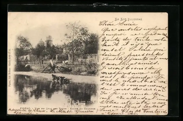 AK Figeac, Vue du quai des Tours, Eglise du Chapitre