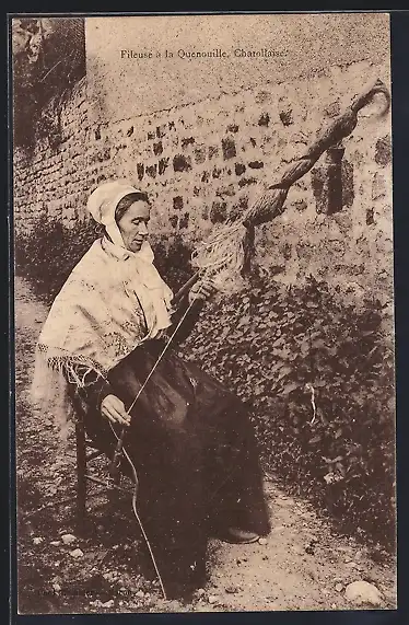 AK Fileuse à la Quenouille, Französin am Spinnrocken