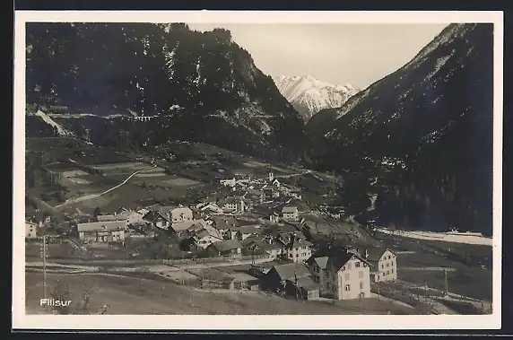 AK Filisur, Gesamtansicht mit Bergblick aus der Vogelschau