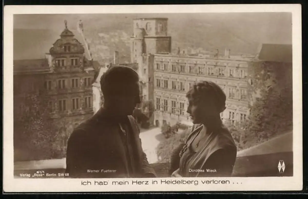 AK Filmszene aus Ich hab mein Herz in Heidelberg verloren.., Paar blickt sich in die Augen