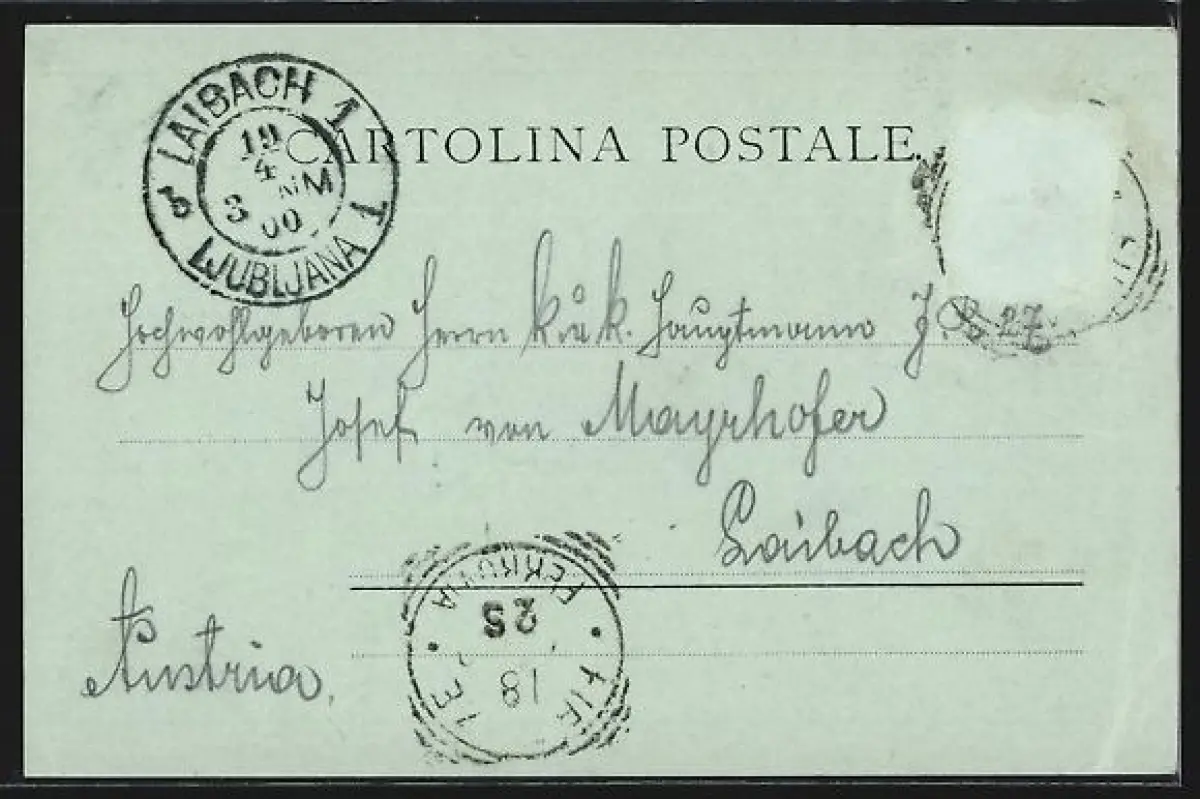 gelaufen 1900, Briefmarke entfernt, rückseitig Oberflächenschaden, guter Zustand