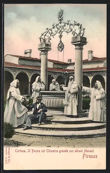 AK Firenze, Contorni Certosa, Il Pozzo nel Chiostro grande con alcuni Monaci che attingono l` acqua