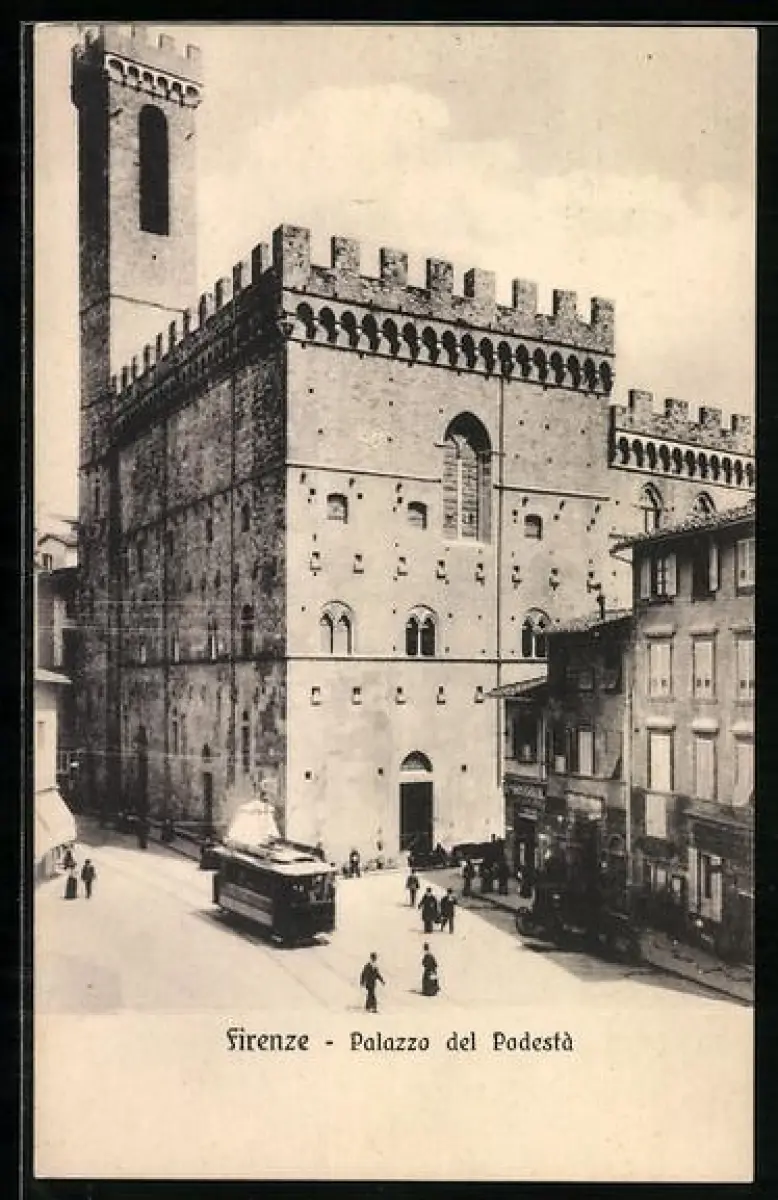AK Firenze, Palazzo del Podesta, Strassenbahn