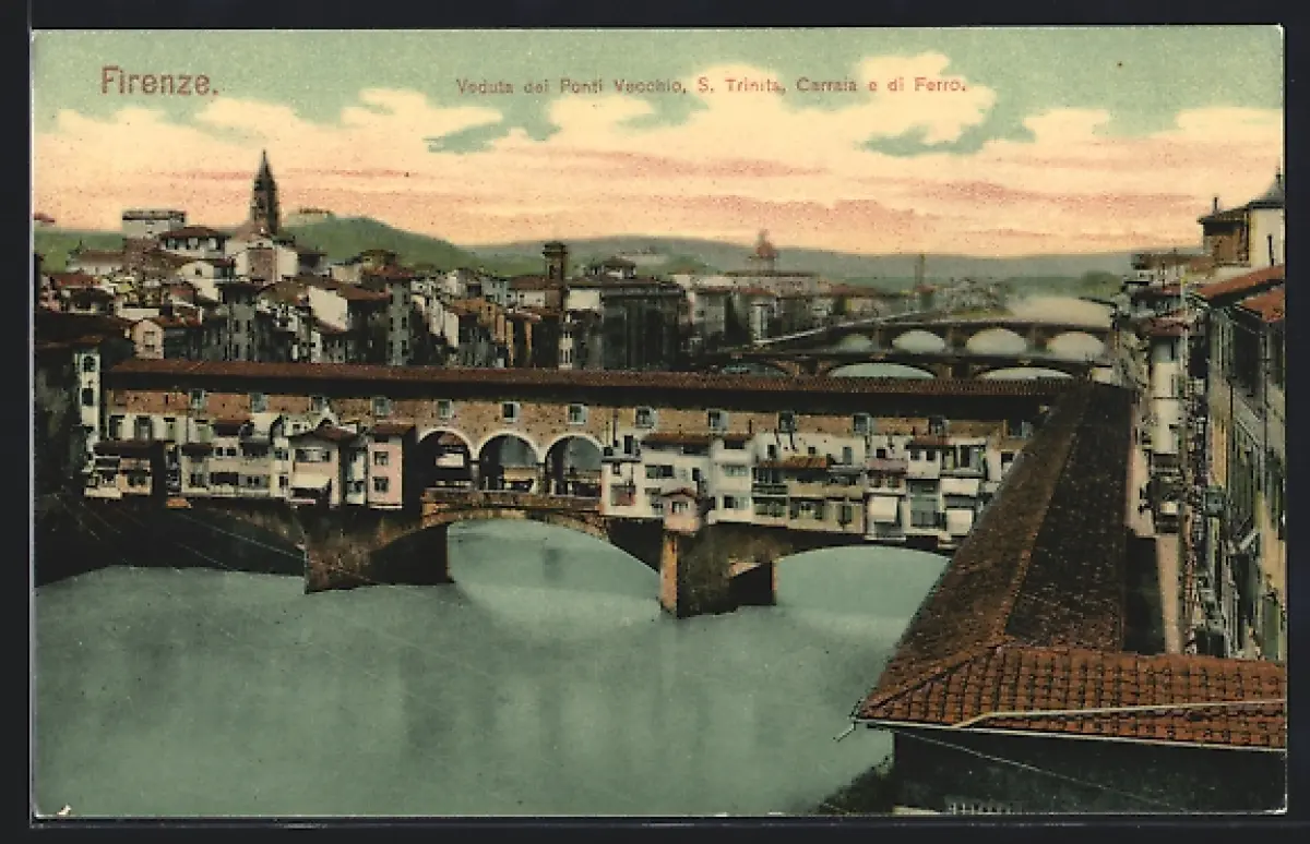 AK Firenze, Veduta dei Ponti Vecchio, S. Trinita e di Ferro