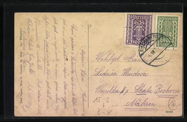 alte Ansichtskarte, gelaufen 1924, Abriebspur oben, guter Zustand